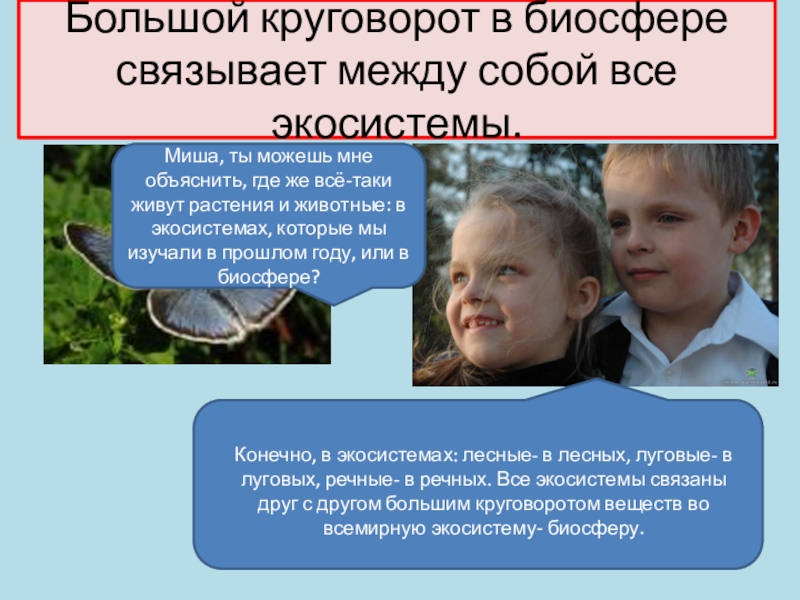 Конечно, в экосистемах: лесные- в лесных, луговые- в луговых, речные- в речных. Все экосистемы связаны друг с другом большим круговоротом веществ во всемирную экосистему- биосферу.