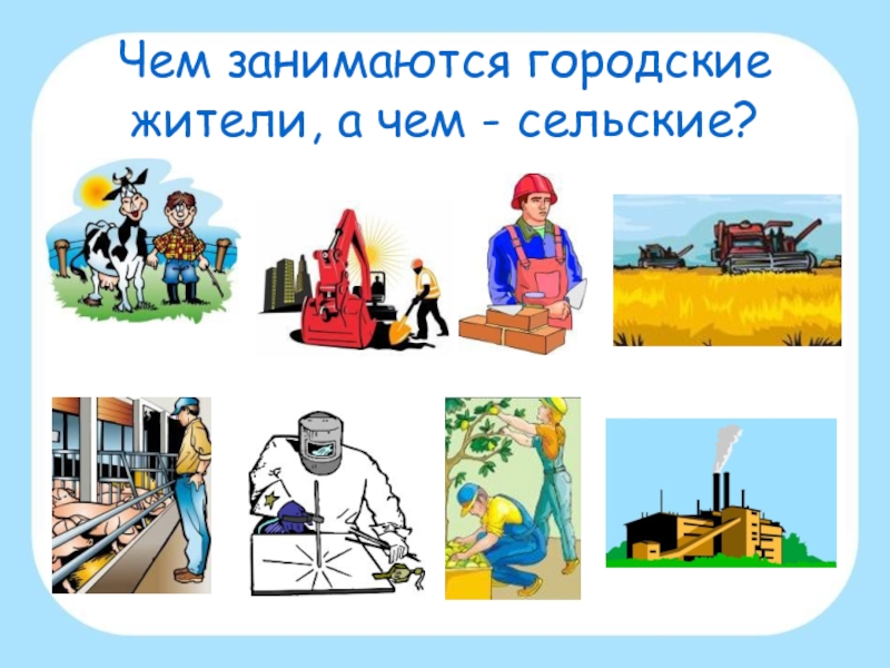 Слайд 16Чем занимаются городские жители, а чем - сельские?