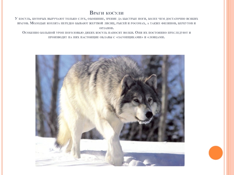 Слайд 6Враги косули У косуль, которых выручают только слух, обоняние, зрение да быстрые