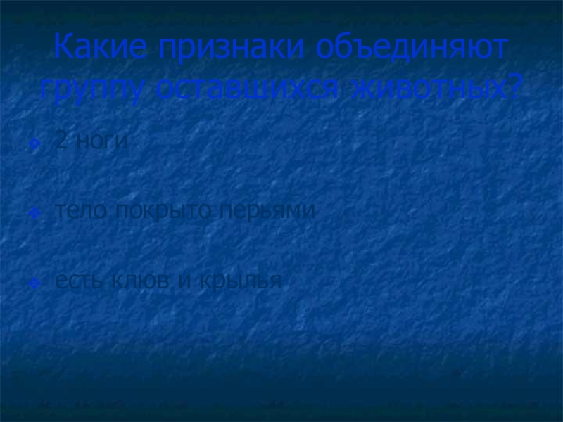 Слайд 3Какие признаки объединяют группу оставшихся животных?