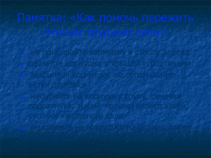 Слайд 10Памятка: «Как помочь пережить птицам трудную зиму»
