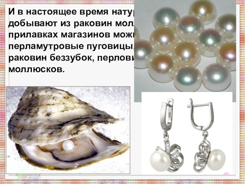 И в настоящее время натуральный жемчуг добывают из раковин моллюсков. А