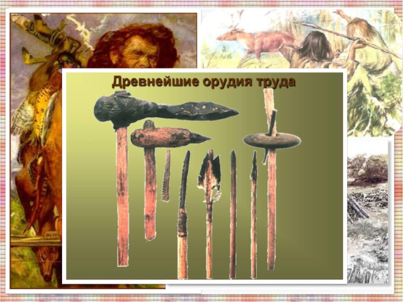 себя пищей, люди ловили рыбу, охотились на птиц, зверей. Из шкур диких зверей мастерили одежду и обувь. Из костей рыб и зверей, зубов и рогов делали иглы, наконечники для копий, украшения.