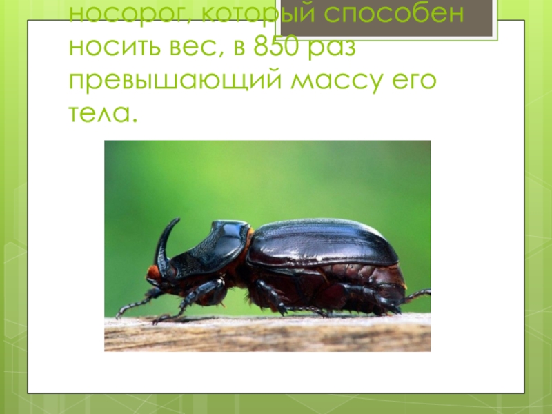 в десятки раз превышающие массу их тела. Сильнее всех — жуг-носорог, который способен носить вес, в 850 раз превышающий массу его тела.