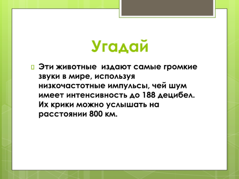 импульсы, чей шум имеет интенсивность до 188 децибел. Их крики можно услышать на расстоянии 800 км.