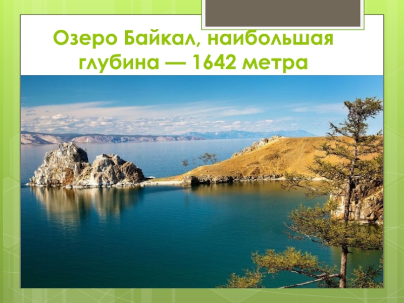 Слайд 24Озеро Байкал, наибольшая глубина — 1642 метра