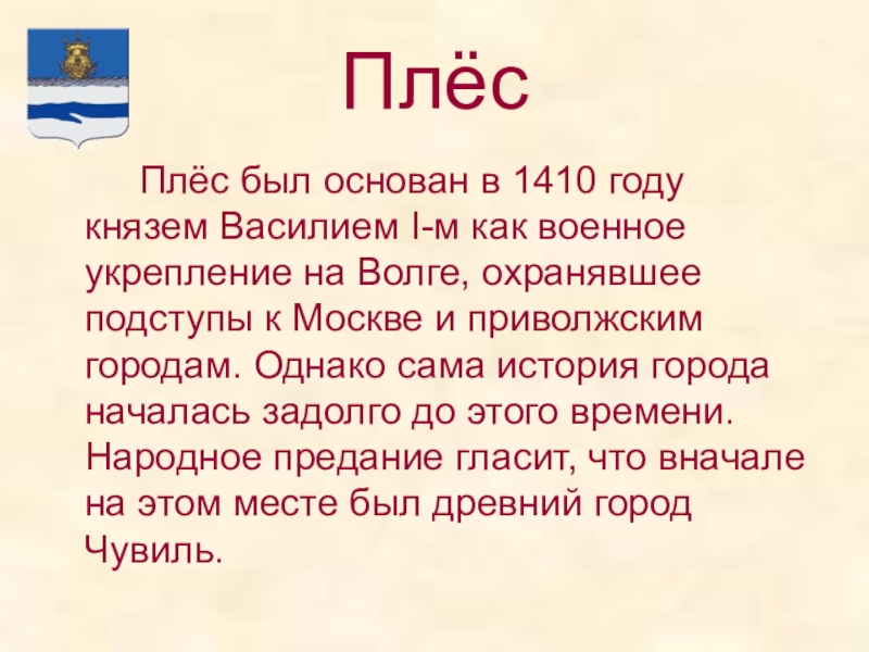 Плёс был основан в 1410 году князем Василием I-м как военное