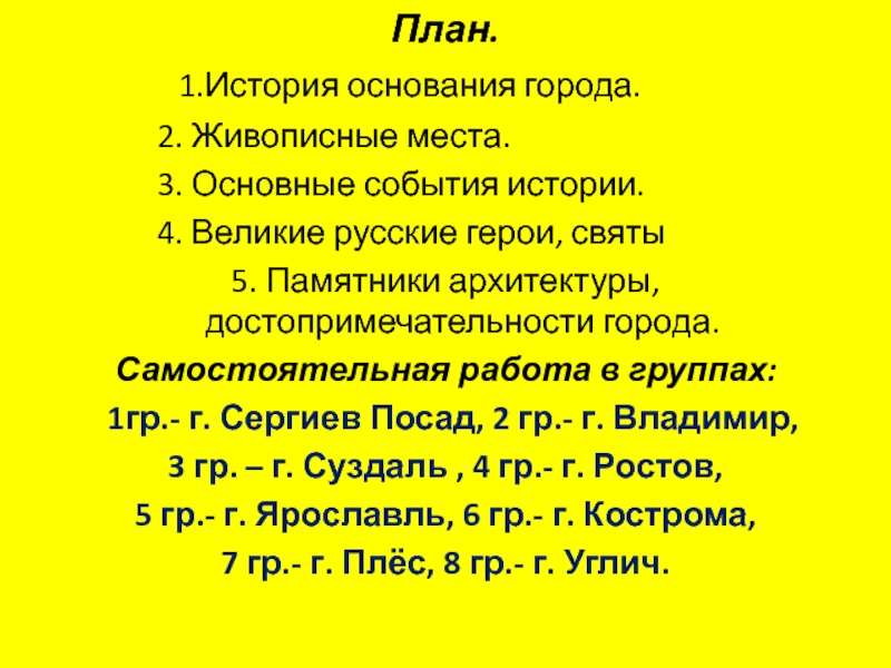 7 гр.- г. Плёс, 8 гр.- г. Углич.
