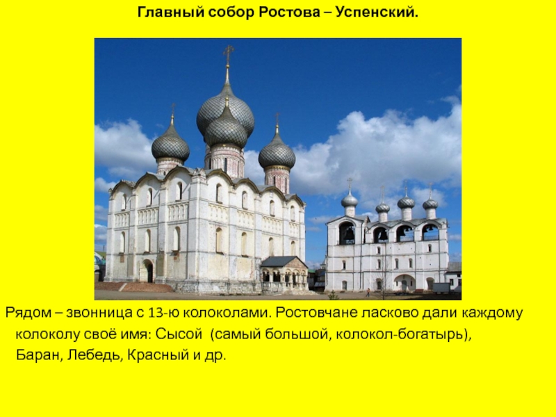 Слайд 25Главный собор Ростова – Успенский.