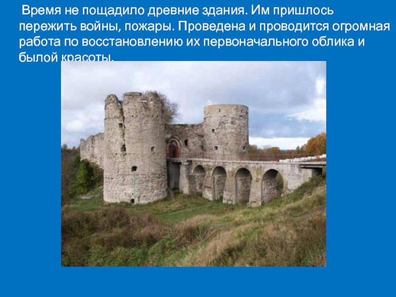 Слайд 5 Время не пощадило древние здания. Им пришлось пережить