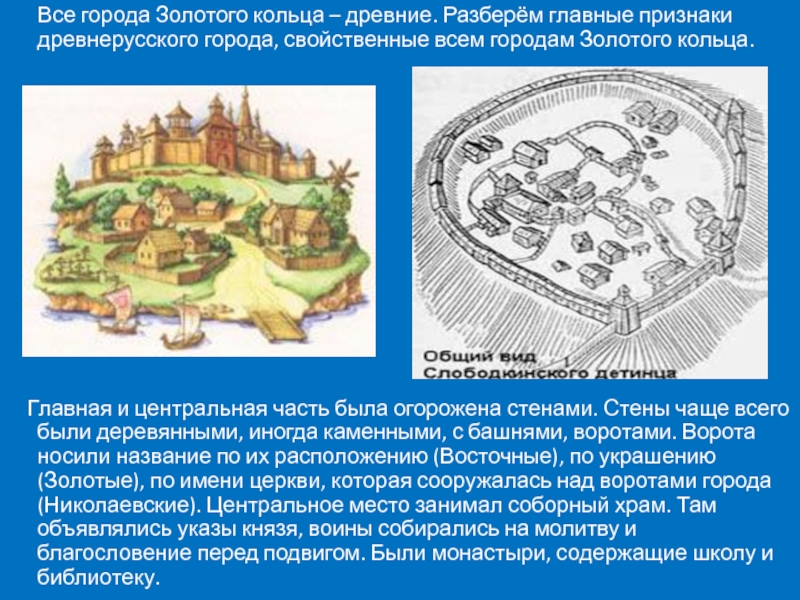 признаки древнерусского города, свойственные всем городам Золотого кольца.