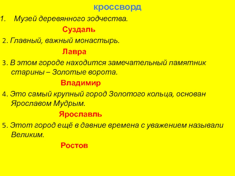 4. Это самый крупный город Золотого кольца, основан Ярославом Мудрым.