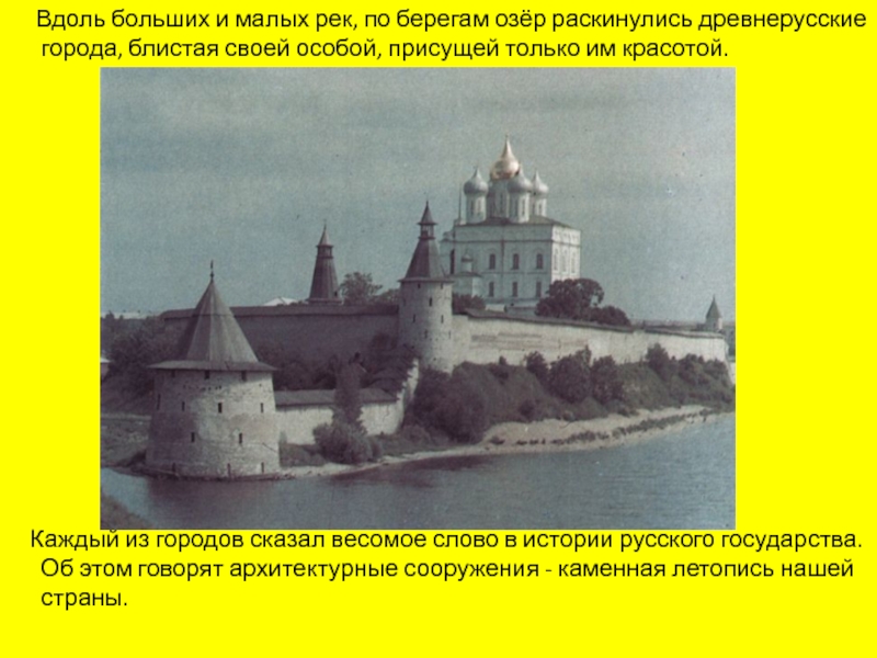 Каждый из городов сказал весомое слово в истории русского государства. Об этом говорят архитектурные сооружения - каменная летопись нашей страны.