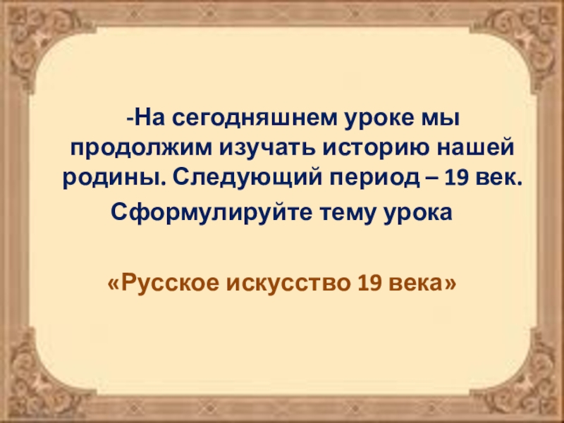 -На сегодняшнем уроке мы продолжим изучать историю нашей родины. Следующий период – 19 век. Сформулируйте