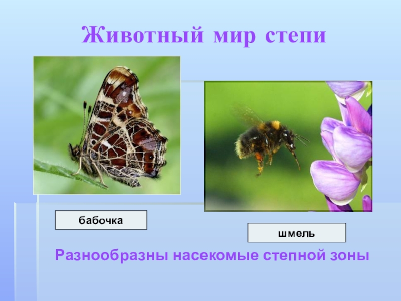 Животный мир степиРазнообразны насекомые степной зоныбабочкашмель
