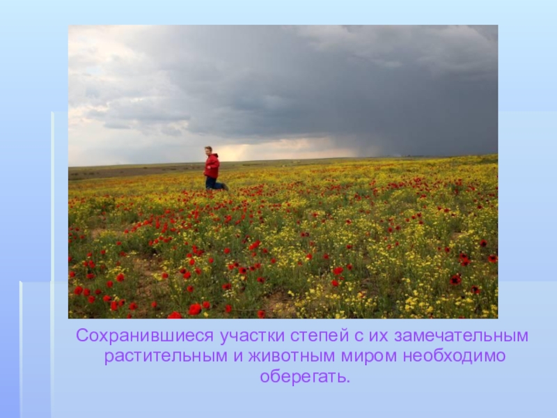Слайд 20 Сохранившиеся участки степей с их замечательным растительным и животным