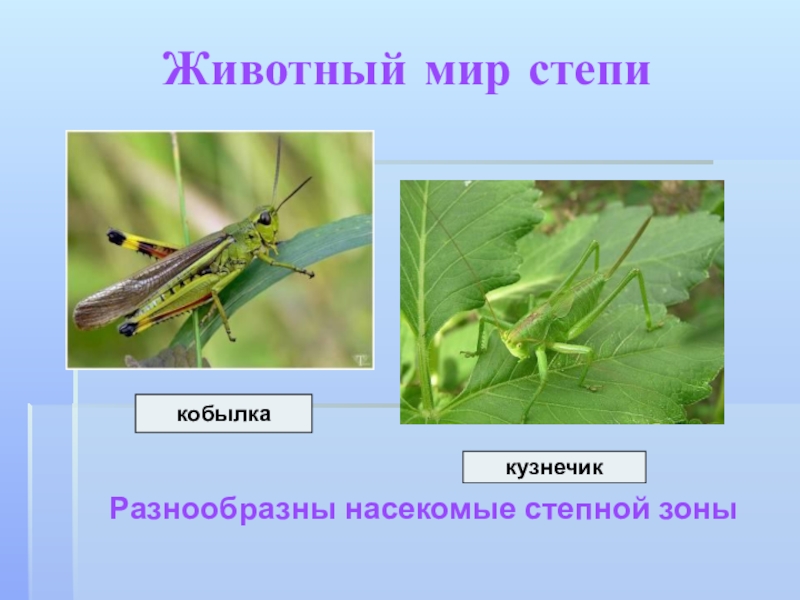 Животный мир степиРазнообразны насекомые степной зоныкобылкакузнечик