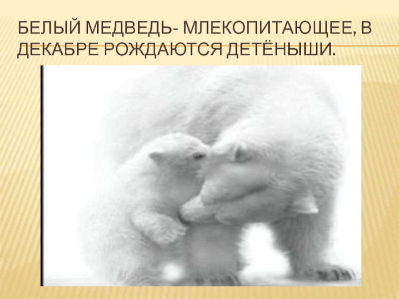Слайд 7Белый медведь- млекопитающее, в декабре рождаются детёныши.