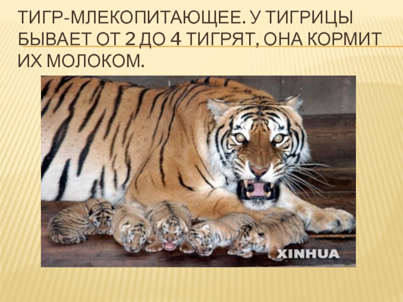 Слайд 6Тигр-млекопитающее. У тигрицы бывает от 2 до 4 тигрят, Она кормит