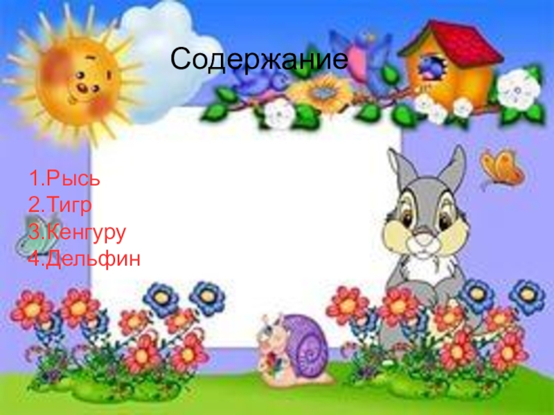 Содержание1.Рысь2.Тигр3.Кенгуру4.Дельфин