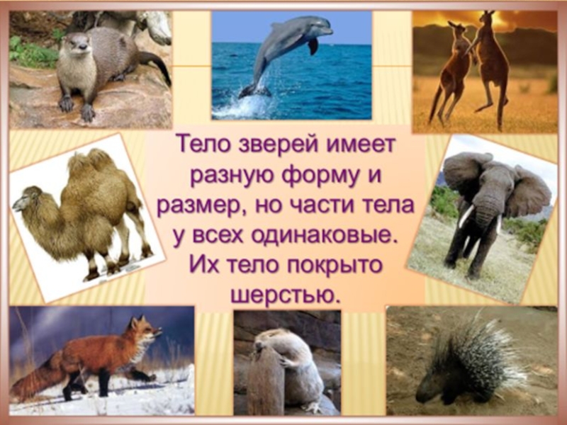 Презентация, доклад по окружающему миру Звери. Строение тела зверей 1 класс