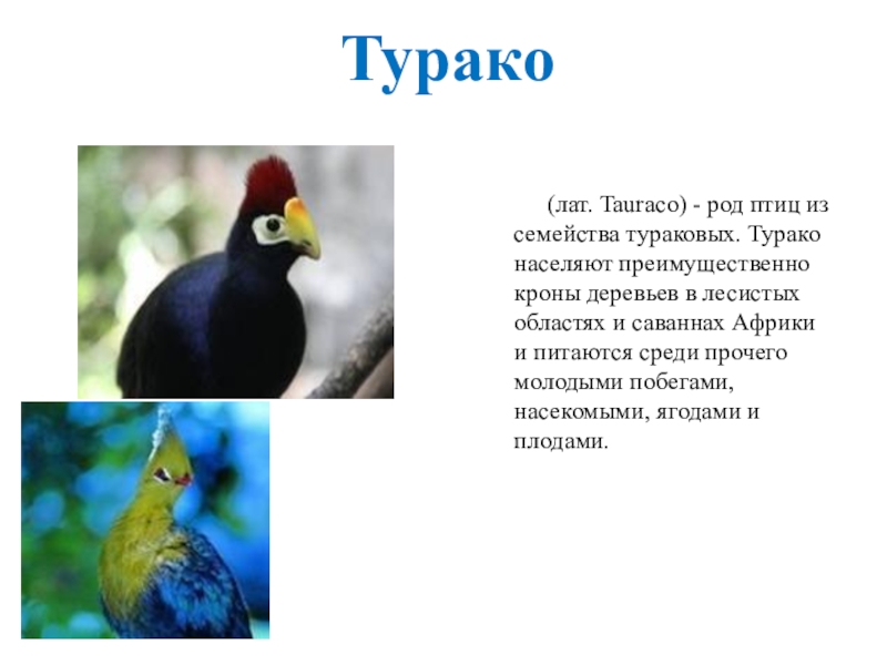 (лат. Tauraco) - род птиц из семейства тураковых. Турако населяют преимущественно