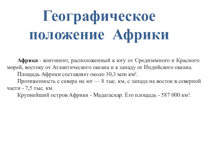 Слайд 9Африка - континент, расположенный к югу от Средиземного и Красного морей, востоку