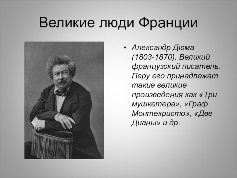 Александр Дюма(1803-1870). Великий французский писатель. Перу его принадлежат такие