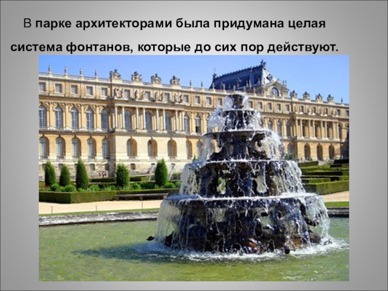 В парке архитекторами была придумана целая система фонтанов, которые до сих