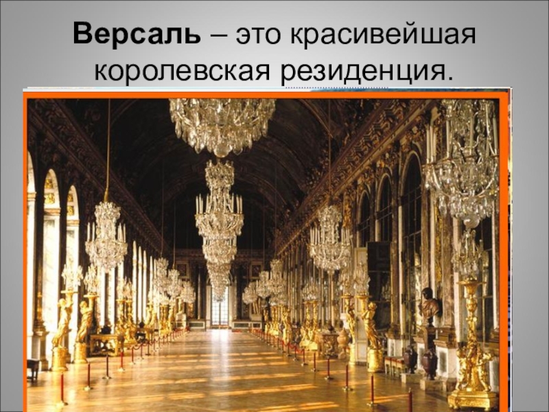 Слайд 12Версаль – это красивейшая королевская резиденция.