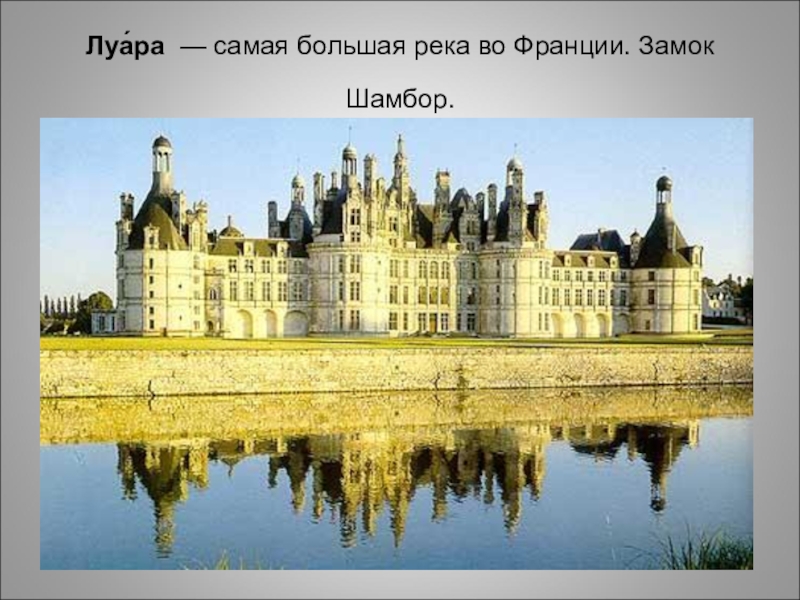Слайд 14Луа́ра — самая большая река во Франции. Замок Шамбор.