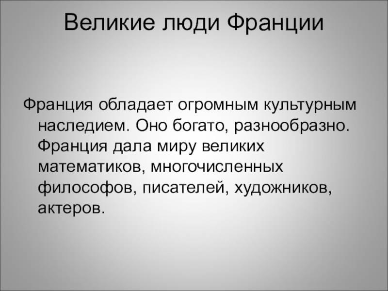 Франция обладает огромным культурным наследием. Оно богато, разнообразно. Франция