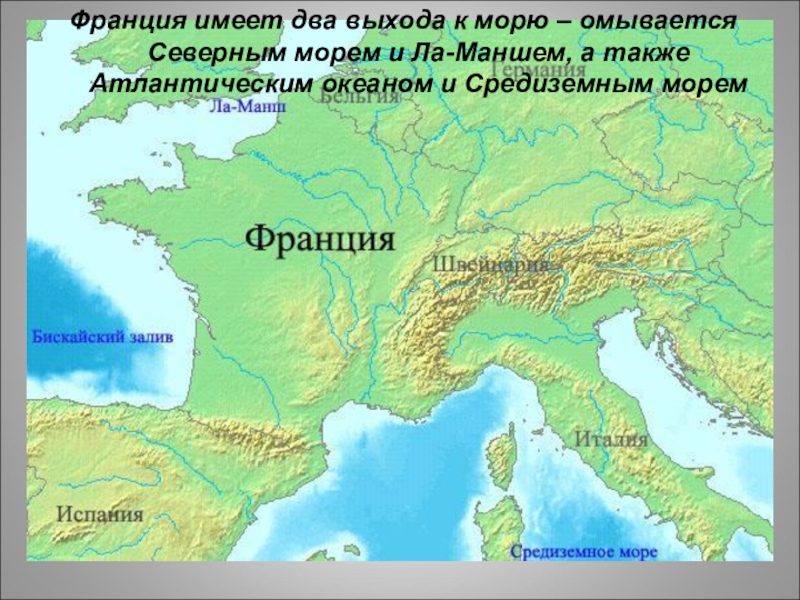 Слайд 4Франция имеет два выхода к морю – омывается Северным морем и