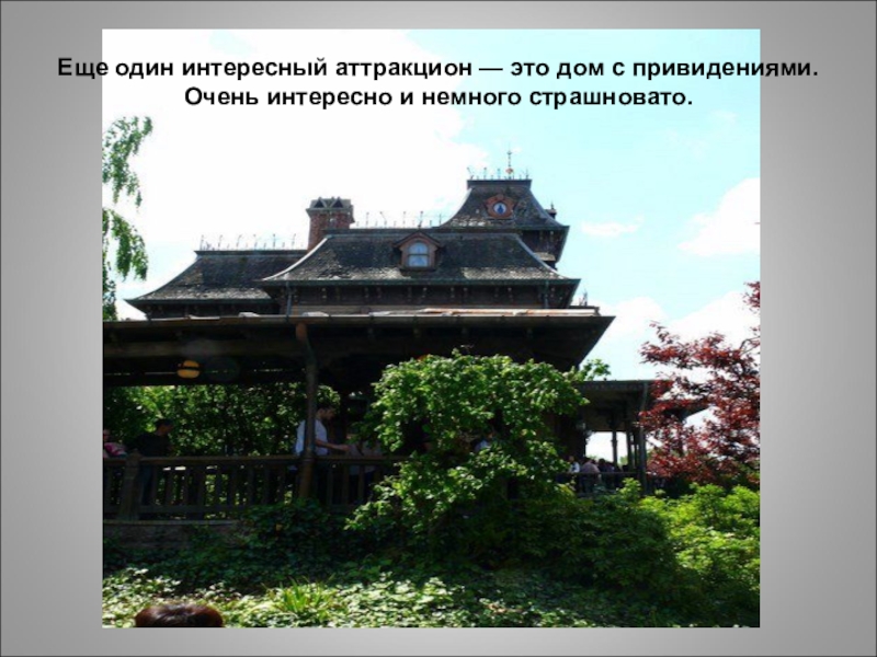 Слайд 32Еще один интересный аттракцион — это дом с привидениями. Очень интересно