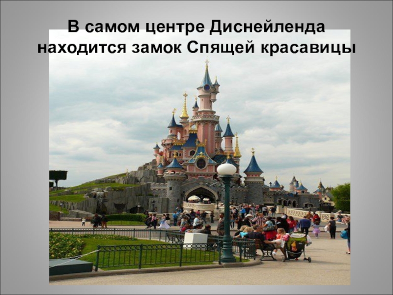 Слайд 28В самом центре Диснейленда находится замок Спящей красавицы