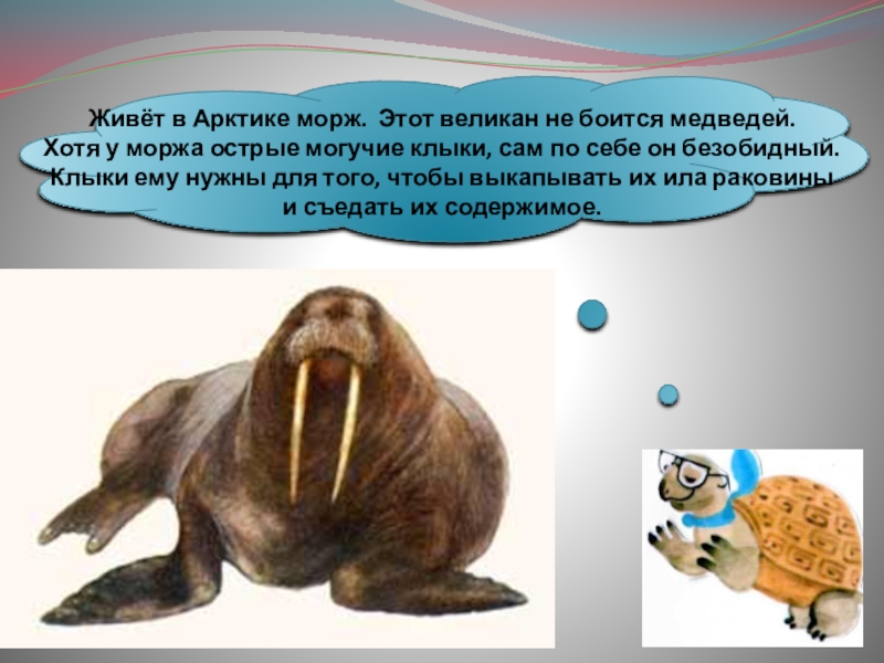 Слайд 17Живёт в Арктике морж. Этот великан не боится медведей.