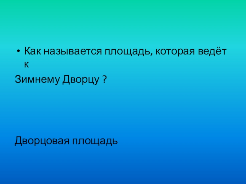 Как называется площадь, которая ведёт к Зимнему Дворцу ?Дворцовая площадь