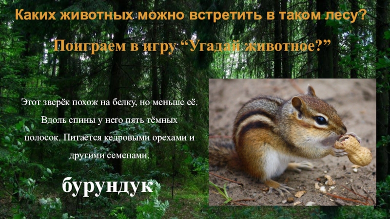 Этот зверёк похож на белку, но меньше её. Вдоль спины у него пять тёмных