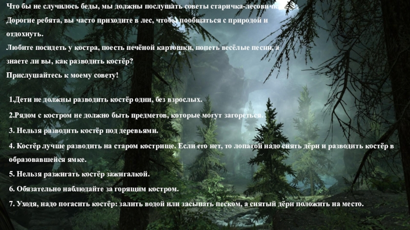 1.Дети не должны разводить костёр одни, без взрослых.
