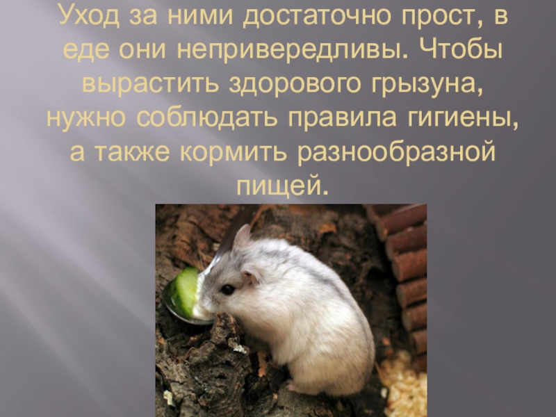 Слайд 5Джунгарский хомяк – это самый популярный грызун, которого можно содержать в