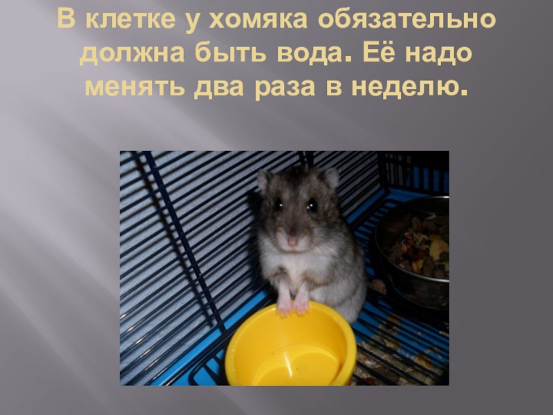 Слайд 8В клетке у хомяка обязательно должна быть вода. Её надо менять