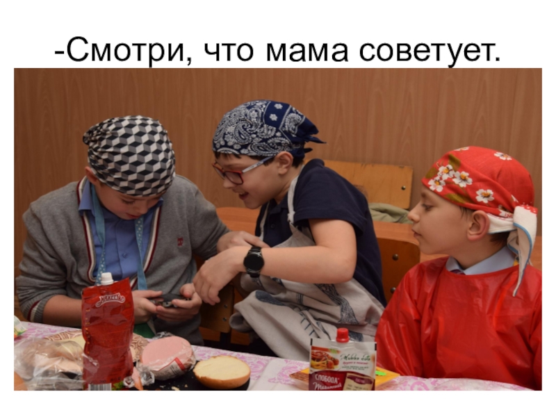 Слайд 7-Смотри, что мама советует.