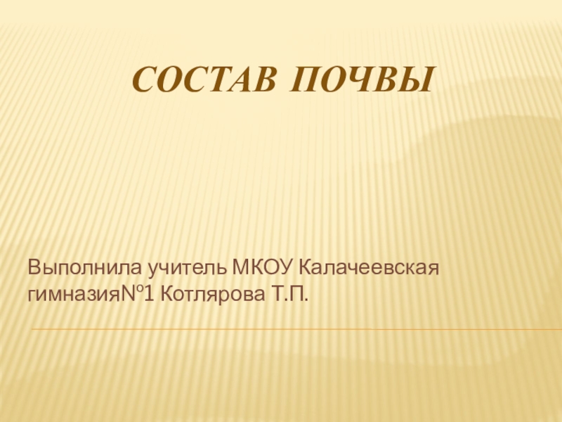 Состав почвы Выполнила учитель МКОУ Калачеевская гимназия№1 Котлярова Т.П.