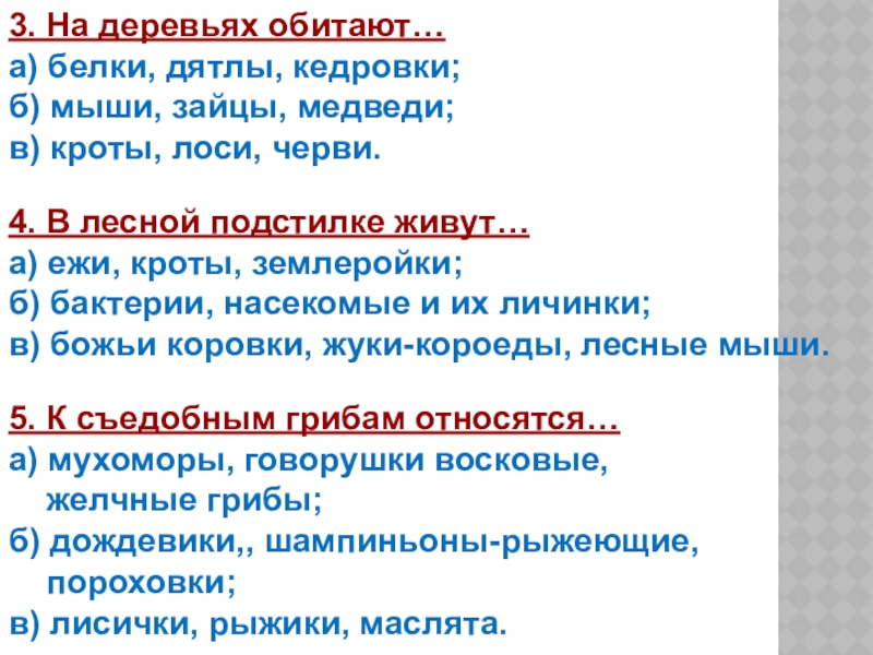 в) божьи коровки, жуки-короеды, лесные мыши.