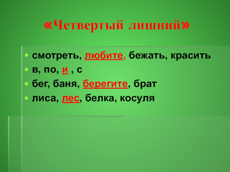 «Четвертый лишний»смотреть, любите, бежать, краситьв, по, и , сбег, баня, берегите, братлиса, лес, белка, косуля
