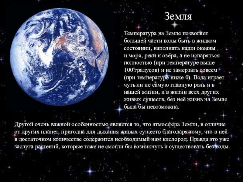 от других планет, пригодна для дыхания живых существ благодаря тому, что в ней