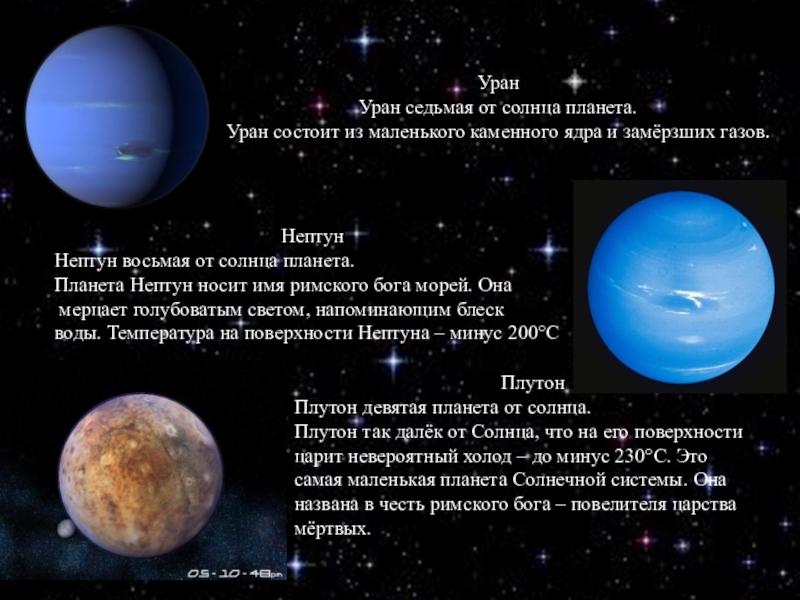 воды. Температура на поверхности Нептуна – минус 200°С.