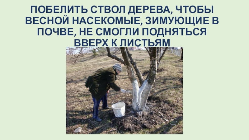 Слайд 17ПОБЕЛИТЬ СТВОЛ ДЕРЕВА, ЧТОБЫ ВЕСНОЙ НАСЕКОМЫЕ, ЗИМУЮЩИЕ В ПОЧВЕ, НЕ СМОГЛИ