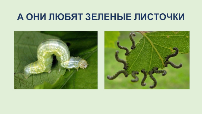 Слайд 12А ОНИ ЛЮБЯТ ЗЕЛЕНЫЕ ЛИСТОЧКИ
