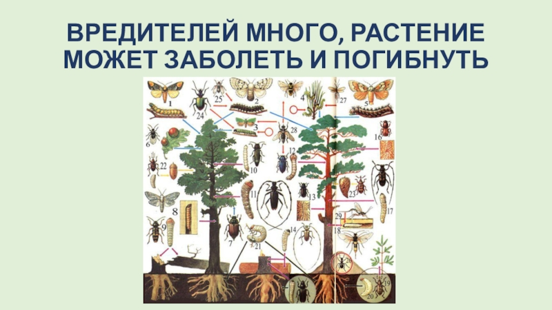 Слайд 13ВРЕДИТЕЛЕЙ МНОГО, РАСТЕНИЕ МОЖЕТ ЗАБОЛЕТЬ И ПОГИБНУТЬ